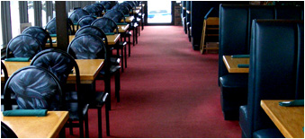 We have booths and regular tables available in our dining room. The entire menu is also served here. Hibachi meals are cooked in the kitchen and brought to your table. Also available is sushi, udon, soup and teriyaki to name a few items.